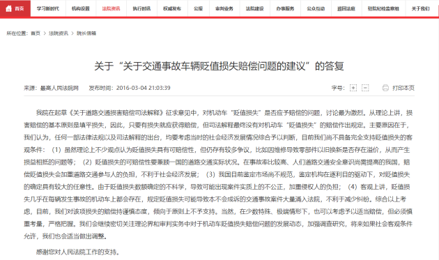 对于以上判决,有些人可能感到意外。但我们在网上搜索会发现,以上案例并不是个例。正如最高人民法院对《关于“关于交通事故车辆贬值损失赔偿问题的建议”的答复》中所言,“客观上讲,贬值损失几乎在每辆发生事故的机动车上都会存在”,目前法院对该项损失的赔偿“持谨慎态度,倾向于原则上不予支持”。即使车辆是由于自身原因出险,保险公司通常也仅是赔偿维修费用,不会赔偿贬值部分的损失。
