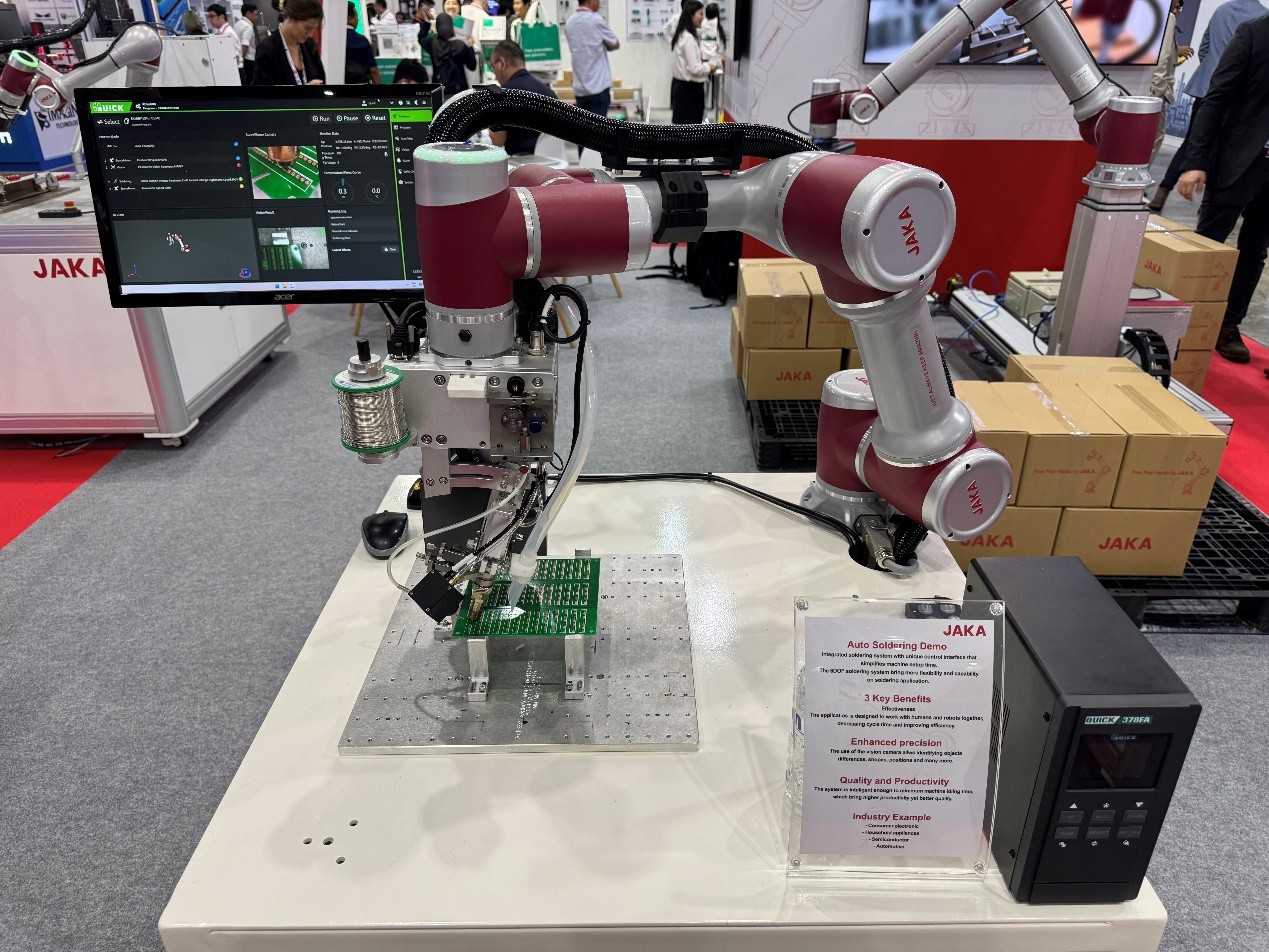 本次展会上,节卡机器人重磅展示了工业领域的创新应用和全球生态圈合作成果。节卡机器人,集多层级安全防护技术、多元智能感知技术、场景化软件工艺包、丰富的通讯接口等优势特点于一身,具有柔性安全、智慧高效、简单易用、轻量易部署的特点,受到国际客户的广泛欢迎。
