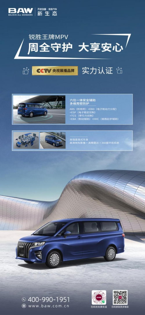 出行安全也是不可忽视的问题,在这方面,锐胜王牌M7 8AT搭载主被动安全配置,双向防护,安全加码。车型采用笼式车身设计,身钣金及焊点设计按照超百万公里使用要求打造,保护关键部位,撞击不易变形,承载力强;还搭载了一系列智能安全驾驶系统,比如、高清倒车影像、车道偏离预警、雷达等功能,保障出行安全的同时,还能减轻驾驶员的驾车压力,让出行更轻松。