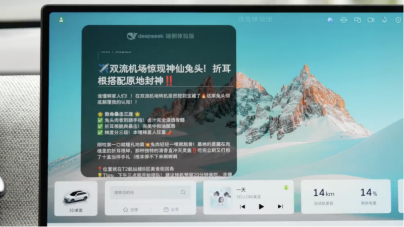 在底层逻辑中,数据流如同维系生命的养分循环。长城汽车通过300万智能网联车辆构建的"数据根系",每天吸收着超过20TB的真实用车数据。这些数据经由Coffee Agent的"光合作用",转化为提升意图理解、原子调用的有机养分。而DeepSeek的接入,则像引入新的固氮菌种,将原本需要10TOPS算力支撑的推理任务,优化至普通车型亦可承载的"低能耗模式"。