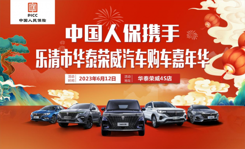 2023年6月12日,中国人保携手乐清市华泰荣威汽车有限公司举办“人保购车嘉年华”活动,购车,好时机就在眼前。大型车展巨惠来袭!买车省钱,一步到位!
