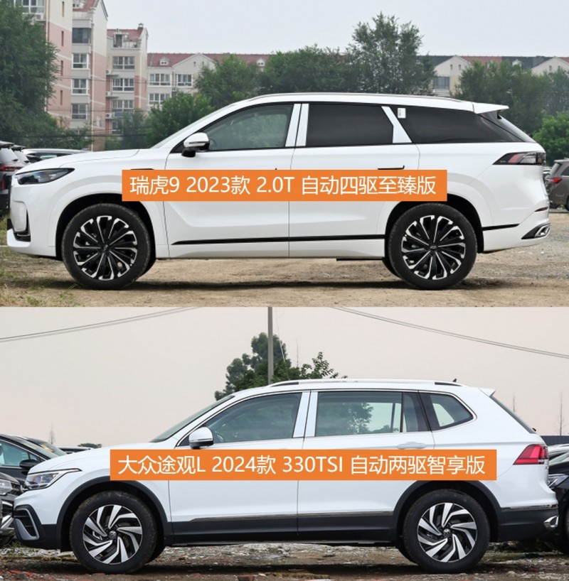 尽管紧凑型SUV可以满足家庭的一般用车需求,但是中型SUV绝对是无数家庭心中的白月光。如今,中型SUV的价格逐渐下探,过去20多万才能触碰,现在不到20万就能圆梦。不少家庭也希望一步到位,早早享受到中型SUV带来的高品质出行体验。小编今天就带来两款热销的中型SUV——奇瑞瑞虎9 2023款 2.0T 自动四驱至臻版(厂商指导价18.39万,以下简称瑞虎9),大众途观L 2024款 330TSI 自动两驱智享版(厂商指导价22.97万,以下简称大众途观L),看看谁更适合中国家庭“出行体质”。