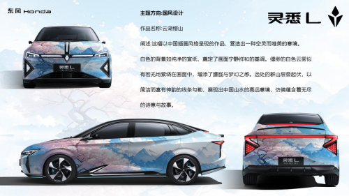 在色彩搭配上,灵悉L采用了时尚热门的“熊猫配色”,黑白格调也为国风赛道的创作打好了基础,凸显了许多色彩清丽的风景画作品。青山绿水、樱花盛放的车贴,将国风与现代完美融合,不仅契合520的节日氛围,更带来宁静清幽的韵味。也有创作者将“鹰击长空”的作为车贴主题,传递出灵悉L驰骋的力量与速度。还有作者取材古典故事《梁祝》,用蝴蝶的意象表达出双向奔赴的浪漫。