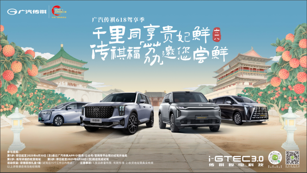 此外,夏日炎炎,正是赏荔好时节,广汽传祺全车系618驾享季尊享福“荔”好礼,试驾GS3影速,即可收到传祺送上的鲜甜荔枝。